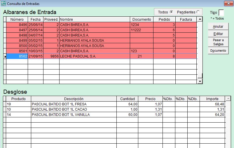 | Técnicas | Proveedor | Finalidad | Caducidad |